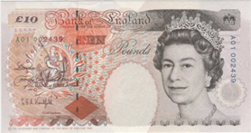 Queen Elizabeth II and Britannia, £10 top R |