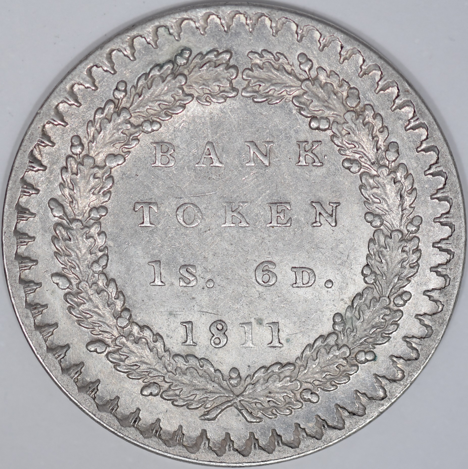 GB Pre-Decimal | Eighteenpence | 3771 | Bank Token | 1811 | | Plain | First Bust | Extremely Fine | 0 |  George III (Bust in Armour) |  Oak Wreath | 1 |